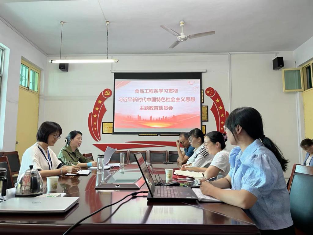 9月18日下午,食品工程系学习贯彻习近平新时代中国特色社会主义思想主题教育工作动员会在食品工程系会议室召开,食品工程系领导班子成员及全体党员参加了会议。
