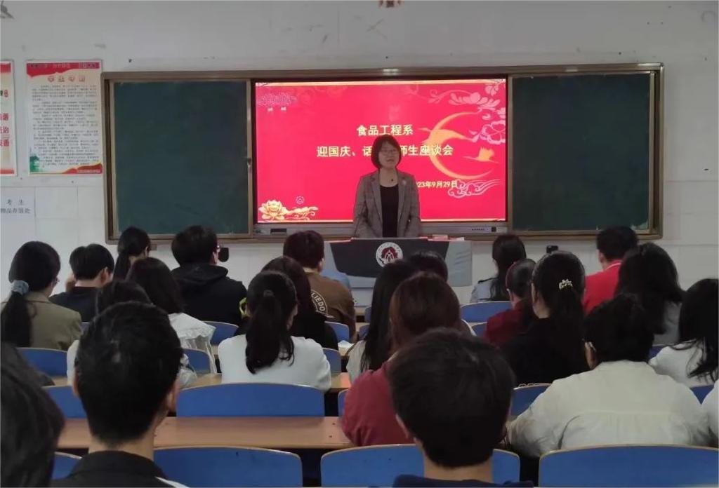 金秋送爽,丹桂飘香,9月29日上午,食品工程系举办“迎国庆、话中秋”师生座谈会,为假期留校的员工送去月饼,带上祝福。座谈会由食品工程系员工管理负责人卢向飞主持,全体领导班子成员及假期留校员工参加了座谈会。
