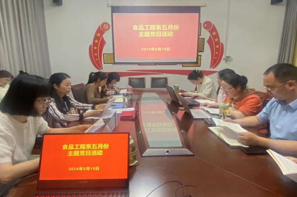 5月15日,食品工程系教工党支部在系党员活动室召开5月份主题党日活动。本次活动由食品工程系党总支负责人王新娜主持,全体党员参加活动。