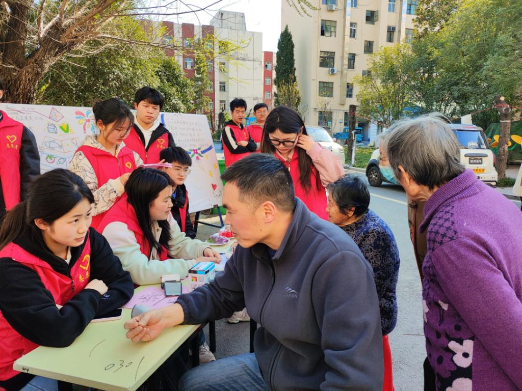 活动现场,专业测量工具一应俱全,血压测量仪、身高体重秤、膳食宝塔摆放整齐。志愿者们充分发挥专业优势,运用沉浸式科普、个性化指导等新颖形式,将课堂所学知识巧妙地运用到实践当中。在为社区的老人测量血压、体重的同时,志愿者们还耐心地讲解健康饮食知识,如各类食物的营养成分、合理的膳食搭配以及食品安全注意事项等。针对社区老人提出的关于日常饮食的疑问,志愿者们都给予了细致且专业的解答。