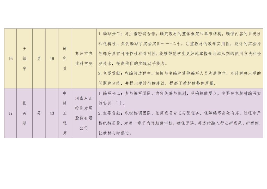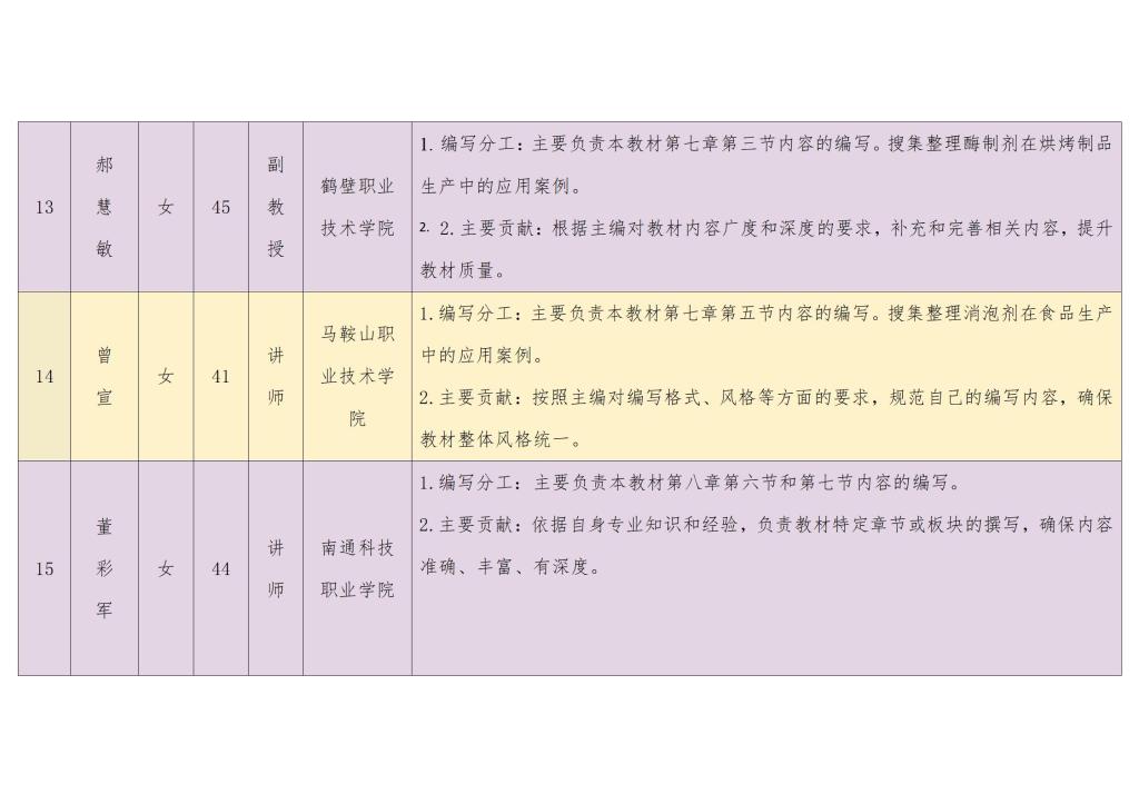 《食品添加剂安全应用技术》团队成员